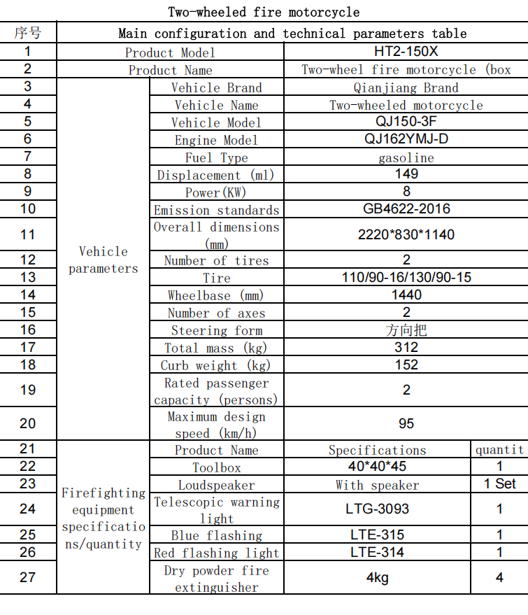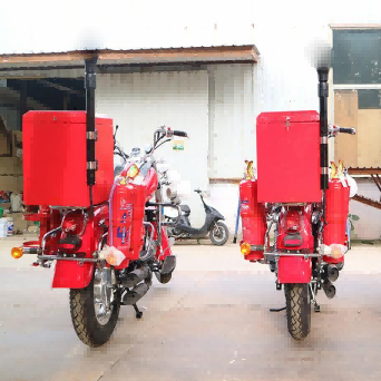 La moto de lutte contre les incendies tout-terrain présente d'excellentes performances tout-terrain. Il peut effectuer des opérations de lutte contre les incendies et de sauvetage de manière rapide et flexible sur des routes de montagne accidentées ou des rues étroites. En cas de danger d'incendie soudain, il peut transporter 3 personnes pour former une équipe de combat afin d'éteindre la source d'incendie.